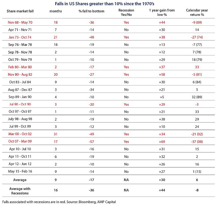 This is a critical question as the US share market invariably sets the direction for global shares including the Australian share market and historical experience tells us that slumps in shares tend to be shallower and/or shorter when there is no US recession and deeper and longer when there is (eg, the tech wreck and the Global Financial Crisis).
