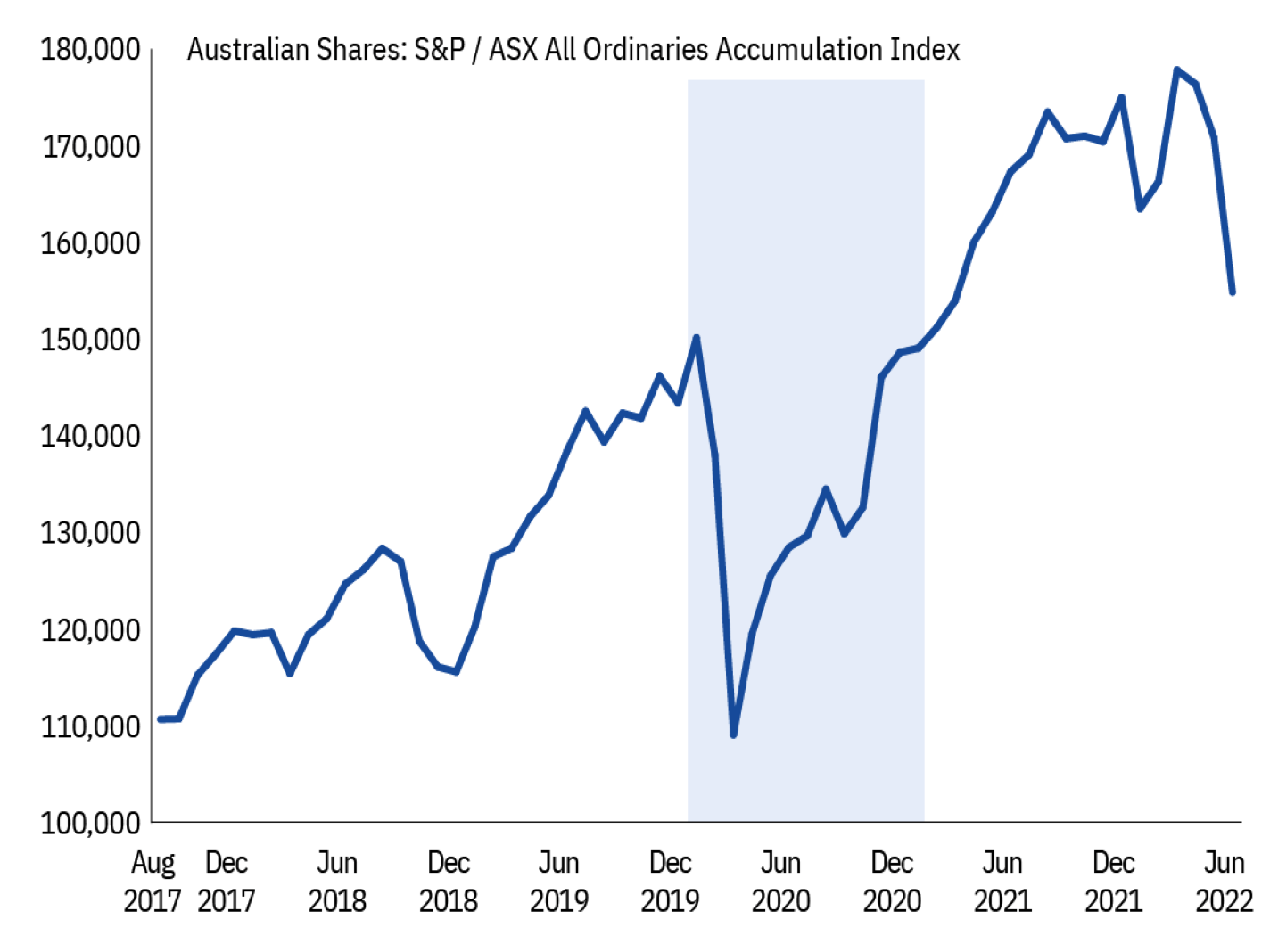 Source: S&P Index Data Services. S&P/ASX All Ordinaries Accumulation Index. Date from 31 August 2017 to 30 June 2022.