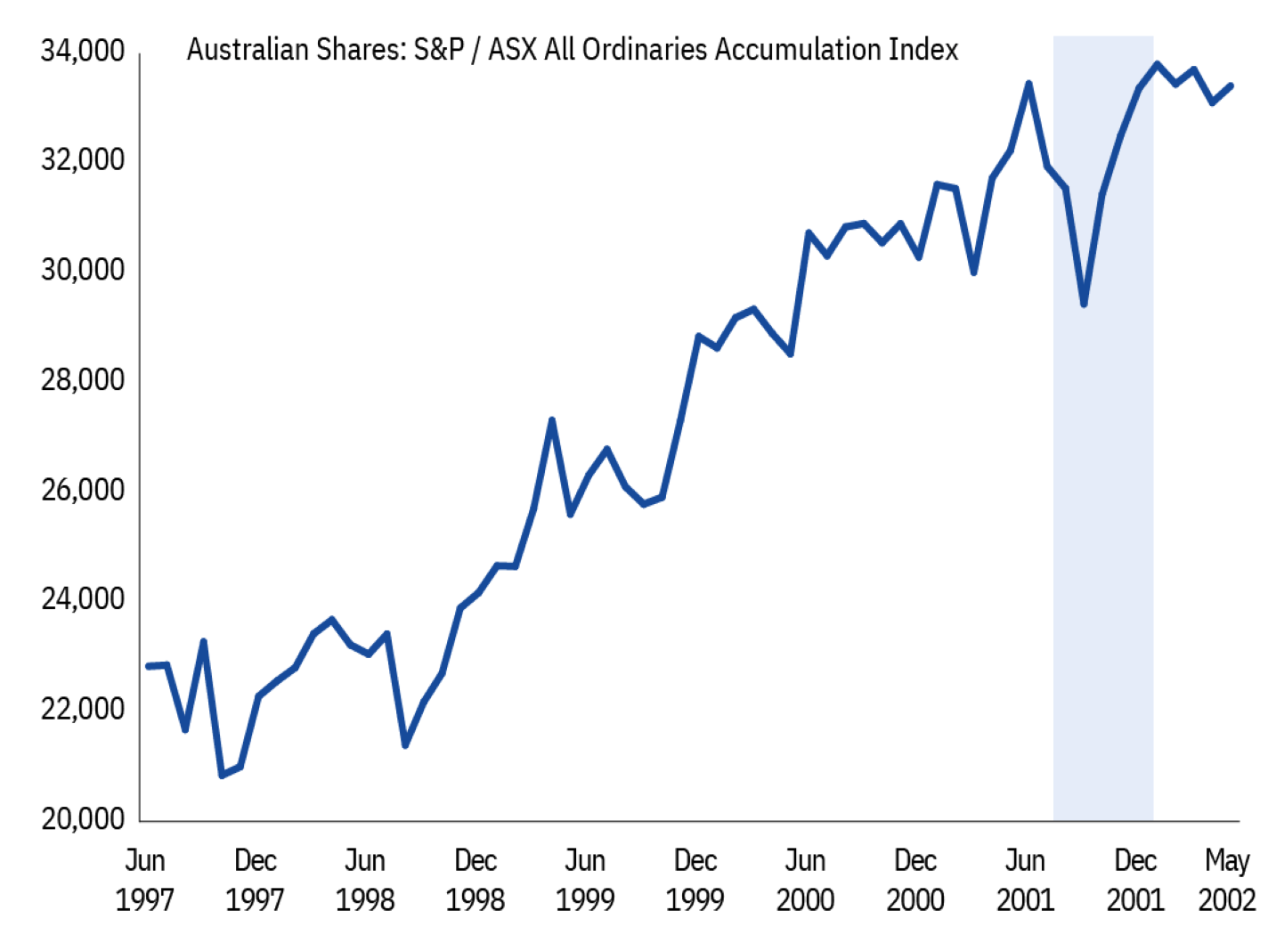 Source: S&P Index Data Services. S&P/ASX All Ordinaries Accumulation Index. Date from 30 June 1997 to 31 May 2002.